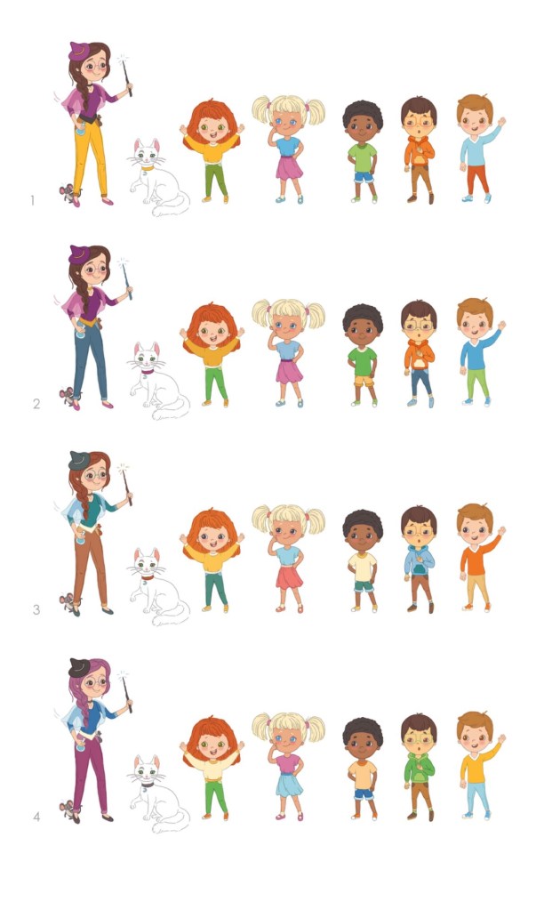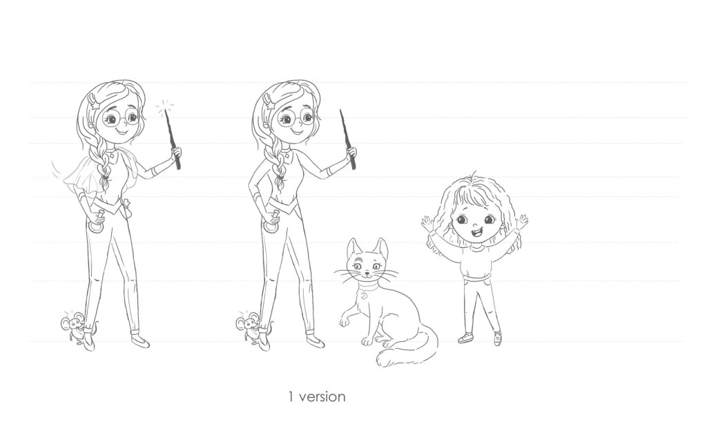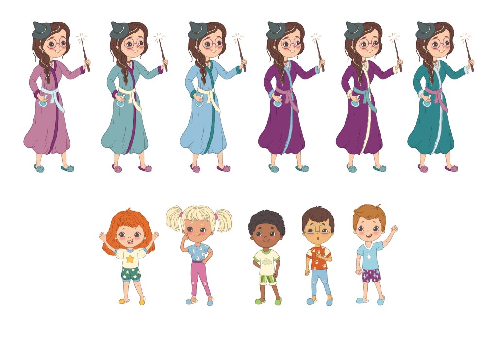 Originally Kateryna drew Megara with a star clip in her hair but I wanted to be clear she was a witch so we discussed adding a small witches hat, like an accessory on a headband – a modern day twist on the more traditional crooked big black hats of witches!