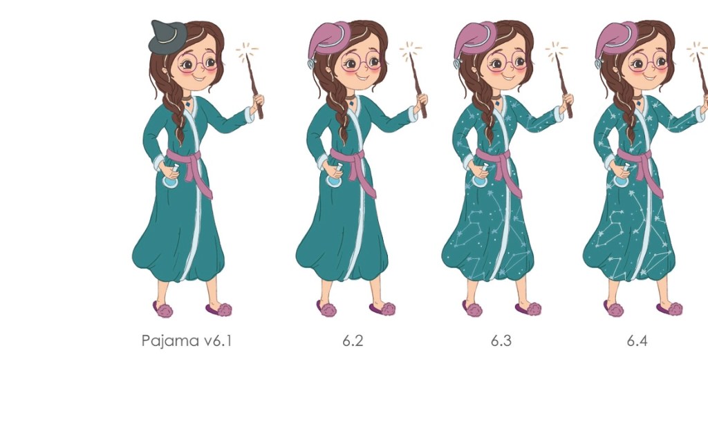I agonised over Megara’s pyjama choices but in the end we nailed it. I also asked Kateryna to add some constellation patterns to Megara’s dressing gown.