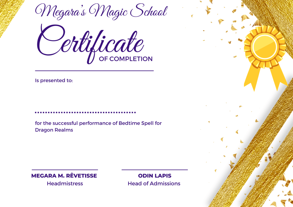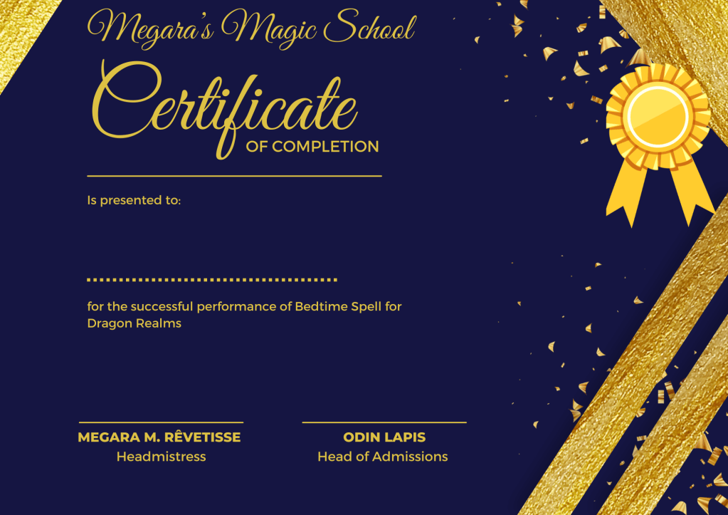 Bedtime Spell for Dragon Realms Certificate Collection
